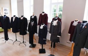 Показан образец школьной формы, изготовленной из ткани, которая отвечает стандартам ГОСТа: нет острых краев и кромок, а материал гипоаллергенен.