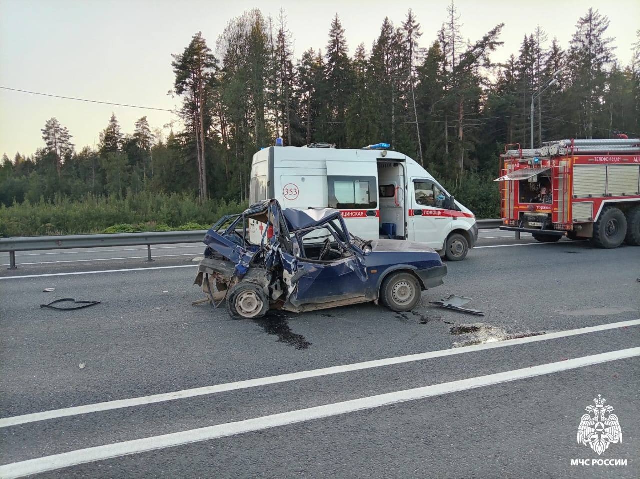 Вчера под Торжком состоялось опасное ДТП. С последствиями работали сотрудники МЧС.